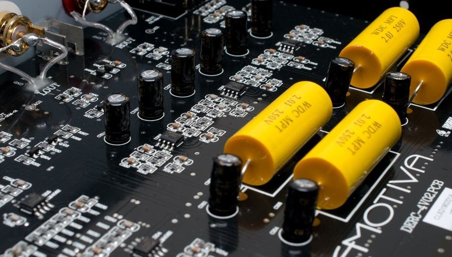 En sortie du mécanisme de lecture, le trajet du signal audio s'effectue de la manière la plus directe possible pour minimiser les interférences qui nuisent à la pureté du signal. Les sorties analogiques du lecteur Emotiva ERC-4 sont associées à un DAC haute performance AD1955 d'Analog Devices. Ce modèle est sélectionné pour la précision de sa conversion qui est ainsi effectuée avec une linéarité inégalée. Ce DAC est couplé à des amplificateurs opérationnels LM4562 à faible bruit et ultra faible distorsion, pour une restitution plus pure et naturelle.