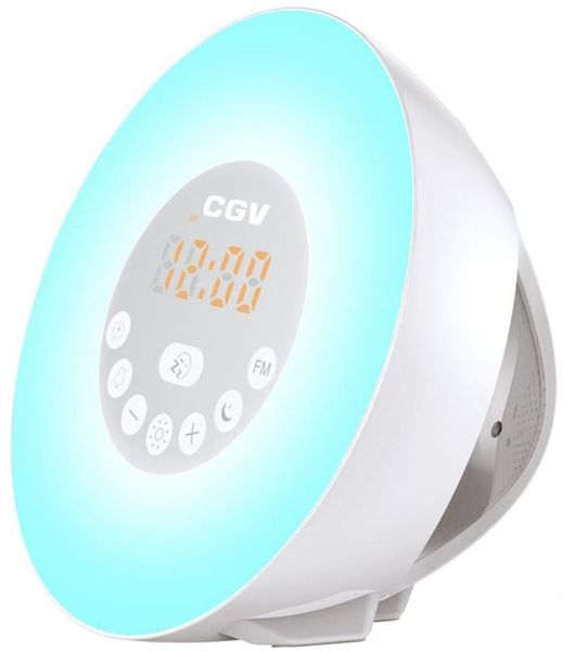 Le radio-réveil CGV CR Aruna est capable de simuler le lever/coucher du soleil, diffuser 6 couleurs différentes ou une lumière blanche réglable.