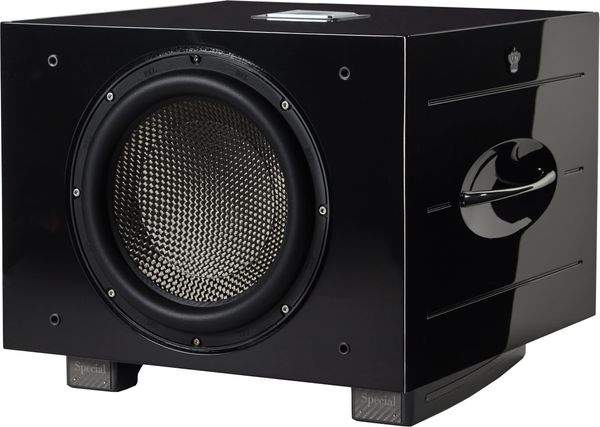 Au cœur du Carbon Special Black Label se trouve un haut-parleur actif de 30,5 cm à membrane en fibre de carbone, un matériau choisi pour son exceptionnel rapport rigidité/masse. Avec un débattement de plus de 60 mm vers l'avant et l'arrière, ce haut-parleur permet d’obtenir des déplacements d’air importants tout en conservant une parfaite maîtrise des transitoires et une distorsion extrêmement faible. Il est associé à un radiateur passif de même diamètre, orienté vers le sol, qui optimise l’extension dans l’extrême grave sans les inconvénients d’un évent bass-reflex classique. Cette architecture assure une restitution à la fois profonde, rapide et parfaitement articulée. De plus, le placement sous le caisson du radiateur passif assure une meilleure homogénéité des basses dans la pièces pour que chaque auditeur vive de véritables sensations fortes, quelle que soit sa position.