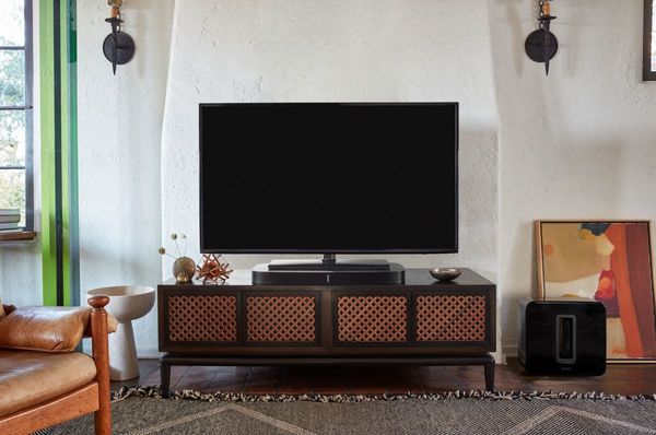 Discrétion et élégance des lignes caractérisent la base enceinte TV Sonos Playbase qui peut supporter un téléviseur pesant jusqu'à 35 kg, soit une très grande majorité des téléviseurs du marché jusqu'à 65" (165 cm) de diagonale.