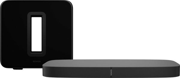Le pack Sonos Playbase + SUB existe également en version 5.1 avec la paire d'enceintes surround sans fil Sonos One SL sous la référence Sonos Playbase 5.1.