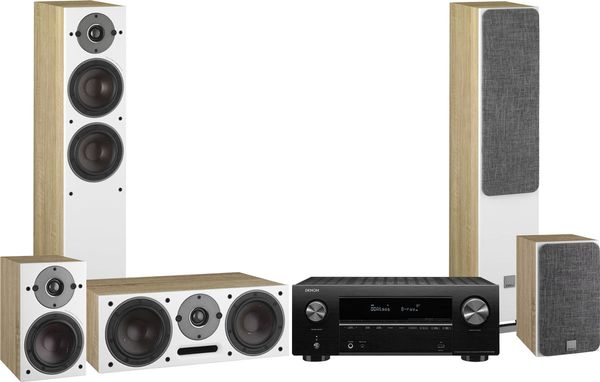 Ce système home-cinéma composé comprend l'ampli home-cinéma 7.2 canaux Denon AVR-X2700H DAB et du pack d'enceintes Dali Oberon 5 HCM 5.0 comprenant la paire d'enceintes colonne Dali Oberon 5, la paire d'enceintes compactes Dali Oberon 1 et l'enceinte centrale Dali Oberon Vokal.