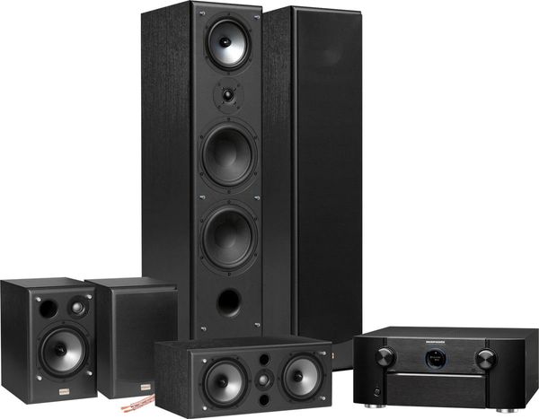 Ce système home-cinéma 5.0 se compose de l'amplificateur home-cinéma 9.2 Marantz SR-7015, de la paire d'enceintes compactes Elipson Prestige 2i, de la paire d'enceintes colonne Elipson Prestige 4i, de l'enceinte centrale Elipson Prestige C2i et de 25 m de câble d'enceintes Norstone CL400 Classic.