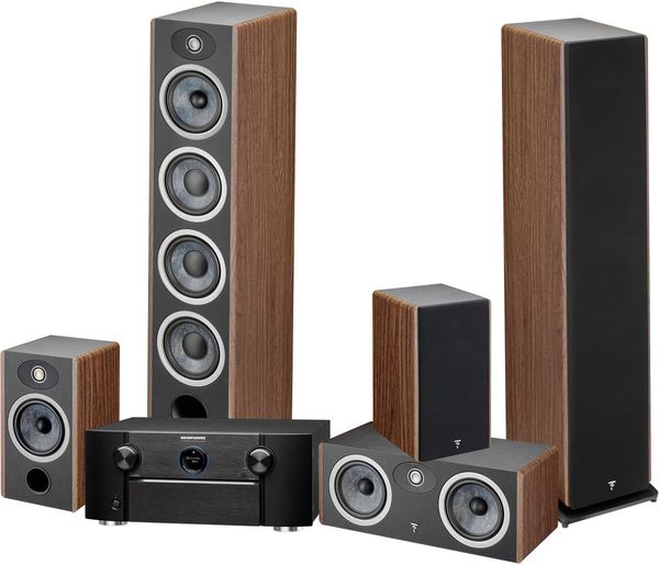 La chaîne grand spectacle Marantz/Focal comprend l'ampli home-cinéma Marantz SR-7015 ainsi que le pack d'enceintes Focal home-cinéma Focal Vestia N°3 System comprenant une paire d'enceintes colonne Focal Vestia N°3, l'enceinte centrale Focal Vestia et la paire d'enceintes Focal Vestia N°1.
