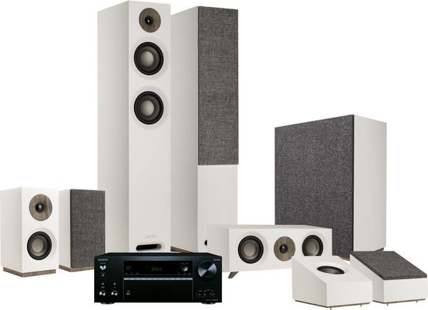 La chaîne home-cinéma Onkyo TX-NR676E + Jamo S809 HCS 5.1.2 comprend l'amplificateur home-cinéma Onkyo TX-NR676E associé au pack d'enceintes Dolby Atmos Jamo S809 HCS 5.1.2 constitué d'une paire d'enceintes colonne Jamo S 809, d'une paire d'enceintes d'effets Dolby Atmos Jamo S8 ATM, d'une paire d'enceintes compactes Jamo S801 utilisées comme enceintes surround, d'une enceinte centrale Jamo S 81 CEN et d'un caisson de basses Jamo S 810 SUB.