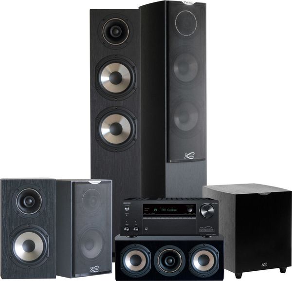 Ce système home-cinéma 5.1 comprend l'amplificateur home-cinéma 7.2 Onkyo TX-NR696, la paire d'enceintes compactes Cabasse MC170 Antigua, la paire d'enceintes colonne Cabasse MC170 Jersey, l'enceinte centrale Cabasse MC170 Socoa, le caisson de basses Cabasse MC170 Orion et 25 mètres de câble d'enceintes NorStone CL250 Classic.