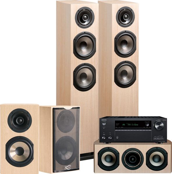 Ce système home-cinéma 5.0 comprend l'amplificateur home-cinéma 7.2 Onkyo TX-NR696, la paire d'enceintes compactes Cabasse MC170 Antigua, la paire d'enceintes colonne Cabasse MC170 Jersey, l'enceinte centrale Cabasse MC170 Socoa et 25 mètres de câble d'enceintes NorStone CL250 Classic.