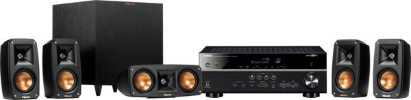 La chaîne home-cinéma Yamaha MusicCast RX-V483 / Klipsch Reference Theater 5.1 comprend l'amplificateur Yamaha MusicCast RX-V483 et le pack d'enceintes Klipsch Reference Theater 5.1 composé de cinq enceintes satellite et centrale, associées à un caisson de basses actif avec transmetteur sans fil.