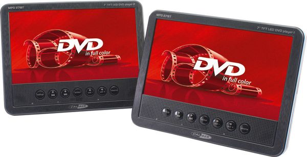 Le Caliber MPD278T comprend deux lecteurs DVD portables disposant chacun d'un écran TFT LCD de 7” de diagonale (17,78 cm) au format 16:9 affichant une image d'une résolution de 800 x 480 pixels. Compatible avec les disques DVD, les CD et les VCD (Vidéo CD), ces deux lecteurs DVD portables assurent également la lecture des fichiers audio MP3, des fichiers vidéo MPEG4 et DivX ainsi que des photos au format JPEG, qu'ils soient stockés sur disques optique ou sur support USB (jusqu'à 16 Go). Chaque lecteur peut être utilisé indépendamment, mais les deux peuvent également être reliés avec le câble fourni pour diffuser le même film depuis l'un des deux lecteurs sur les deux écrans.