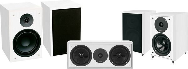 Le pack d'enceintes compactes Eltax comprend une paire d'enceintes bibliothèque Eltax Monitor V, une paire d'enceinte bibliothèque Eltax Monitor III et l'enceinte centrale Eltax Monitor Centre.