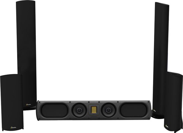 Le pack d'enceintes home-cinéma GoldenEar SuperSat 50 5.0 comprend deux enceintes GoldenEar SuperSat 50 pour les canaux avant gauche et droit, deux enceintes GoldenEar SuperSat 3 pour les effets surround et une enceinte centrale GoldenEar SuperSat 50C.