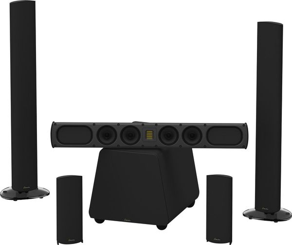 Le pack d'enceintes home-cinéma GoldenEar SuperSat 60 5.1 comprend deux enceintes GoldenEar SuperSat 60 pour les canaux avant gauche et droit, deux enceintes GoldenEar SuperSat 3 pour les effets surround, une enceinte centrale GoldenEar SuperSat 60C et un caisson de basses GoldenEar ForceField 3.