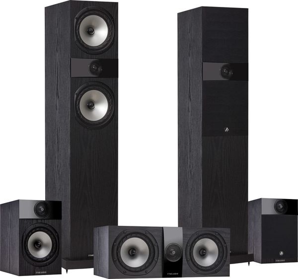 L'enceinte compacte Fyne Audio F300 est ici employée pour la restitution des canaux surround. Pour ce faire, elle dispose d'un tweeter à dôme en polyester de 2,5 cm de diamètre pour la restitution des hautes fréquences, associé à un haut-parleur de grave-médium de 12,7 cm de diamètre à membrane en microfibres. Ce dernier bénéficie également de la technologie FyneFlute pour réduire les risques de coloration du son. Elle offre une réponse en fréquence allant de 54 Hz à 28 kHz.