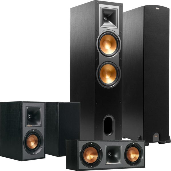 Ce pack d'enceintes 5.0 Klipsch comprend la paire d'enceintes colonne Klipsch R-28F, la paire d'enceintes compactes Klipsch R-41M et l'enceinte centrale Klipsch R-52C.