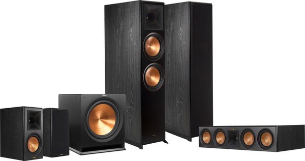 Le pack d'enceintes home-cinéma Dolby Atmos Klipsch Reference Premiere RP-8060FA HCM 5.1.2 comprend la paire d'enceintes colonne Klipsch RP-8060FA, la paire d'enceintes compacte Klipsch RP-600M utilisées comme enceintes surround, l'enceinte centrale Klipsch RP-504C ainsi que le caisson de basses Klipsch R-115 SW.