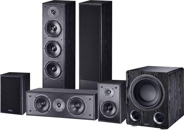 Ce pack d'enceintes home-cinéma 5.1 Magnat se compose la paire d'enceintes colonne Magnat S70, de la paire d'enceintes bibliothèque Magnat S10B, de l'enceinte centrale Magnat S12C et du caisson de basses Magnat RS12.