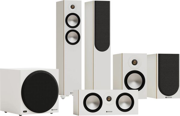 Le pack home-cinéma Monitor Audio Bronze 300 7G 5.1 comprend la paire d’enceintes colonne Monitor Audio Bronze 300 7G, la paire d’enceintes bibliothèque Monitor Audio Bronze 50 7G pour les voies surround ainsi que l’enceinte centrale Monitor Audio Bronze Centre 7G et le caisson de basses Monitor Audio Vestra W12. Puissant et élégant, cet ensemble 5.1 s’intègre facilement dans un salon contemporain tout en offrant une restitution précise, équilibrée et immersive.