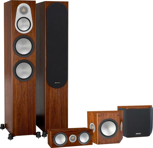 Le fabricant britannique renouvelle ses enceintes Silver, les enceintes de ce pack Monitor Audio Silver 300 HC 5.0 bénéficiant notamment d'un nouveau tweeter C-CAM Gold de 25 mm de diamètre optimisé. L'esthétique est très réussie avec du placage bois véritable et des finitions soignées. L'enceinte colonne Monitor Audio Silver 300 est équipée d'un tweeter C-CAM Gold de 25 mm de diamètre, d'un haut-parleur RST de 10 cm de diamètre dédié aux moyennes fréquences et de deux haut-parleurs RST de 15 cm de diamètre dédiés au registre grave, ces deux derniers étant chacun mis en œuvre dans un volume d'air distinct, accordé en bass-reflex. Les deux évents circulaires Hive II qui débouchent sur la face arrière de l'enceinte délivrent un flux d'air très régulier, notamment à haut niveau et suppriment tout bruit d'écoulement à fort volume. Le filtre passif utilise des composants de très haute qualité, câblés avec du câble en cuivre OFC plaqué argent. La réponse en fréquence de cette enceinte s'étend de 32 Hz à 35 kHz.