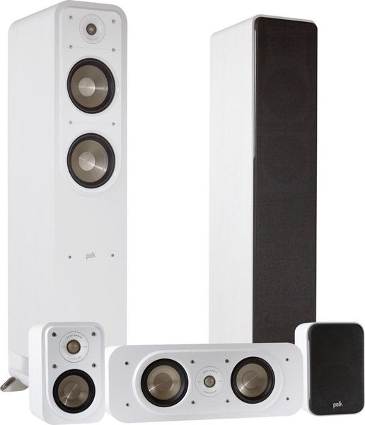 L'ensemble Polk Pack 5.0 S50 comprend la paire d'enceintes colonne Polk Signature S50, l'enceinte centrale Polk Signature S30 et la paire d'enceintes Polk Signature S10.