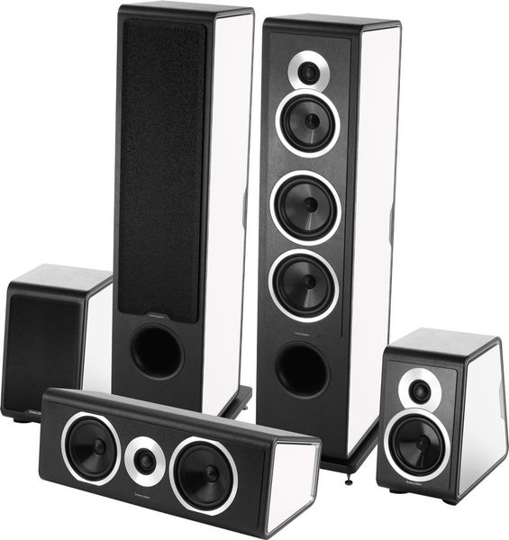 Le pack d'enceintes home-cinéma Sonus Faber Chameleon T System 5.0 comprend la paire d'enceintes Sonus Faber Chameleon T, la paire d'enceintes Sonus Faber Chameleon B et l'enceinte centrale Sonus Faber Chameleon C.