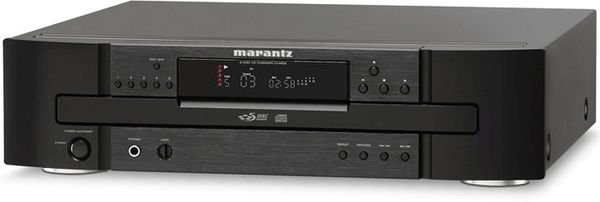 Le Marantz CC4003 est un lecteur de CD doté d'un carrousel pouvant accueillir cinq disques. Compatible avec les CD enregistrables et avec les fichiers audio MP3 et WMA, il peut ainsi diffuser des heures de musique sans interruption et sans intervention de votre part. Adoptant une construction rigoureuse avec un châssis en métal, il tire le meilleur de vos enregistrements grâce à son convertisseur multi-bit Cirrus Logic CS4392. La connectique complète comprend une sortie audio analogique stéréo (RCA), deux sorties audio numériques (optique et coaxiale) ainsi qu'un port RS232 et une entrée / sortie D-bus pour l'intégration dans un ensemble synchronisé. Parmi les fonctions de confort, on note la possibilité d'atténuer ou d'éteindre l'afficheur en façade, la possibilité de changer trois disques pendant la lecture du cinquième, la sortie casque avec contrôle du volume ou encore la télécommande qui donne accès à toutes les fonctions de la platine.