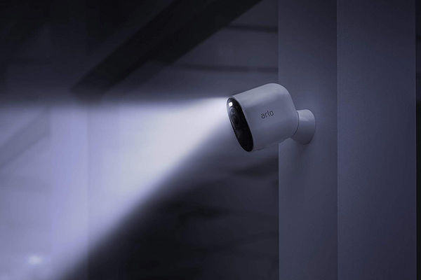 La caméra Arlo Ultra VMC5040 du système de surveillance vidéo Arlo Ultra VMS5440 intègre deux LED pour la vison nocturne ainsi qu'un spot qui peut être déclenché lorsqu'elle détecte un mouvement.
