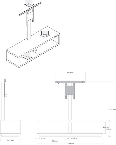 Dimensions externes (L x H x P) : 1500 x 1355 x 450 mm