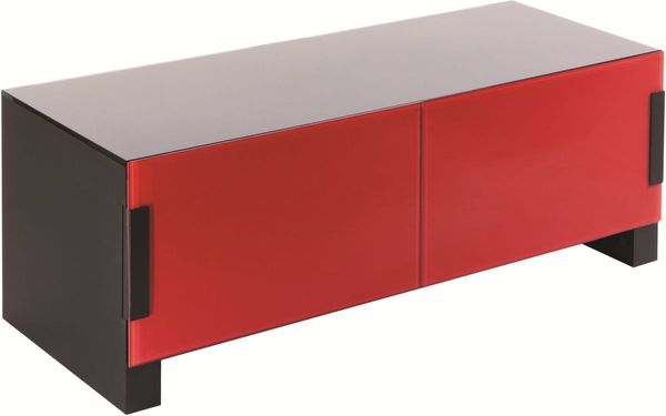 Au total, ce meuble peut accueillir 60 kg d'appareils électroniques. Ses flancs en bois satiné et ses plateaux et portes en verre trempé lui donnent un aspect élégant, tout en dissimulant une solide structure en acier laqué et grainé. Le plateau supérieur est d'une épaisseur de 8 mm alors que le plateau inférieur a une épaisseur de 6 mm. Pratique, le dos est aimanté et amovible, pour accéder à la connectique des appareils électroniques.