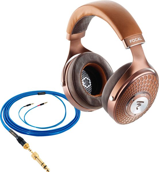Le casque Focal Stellia est livré dans un luxueux coffret recouvert de cuir. Celui-ci renferme le casque et sa valise de transport rigide, ainsi qu'un second coffret recouvert de cuir également. Ce dernier contient une pochette en cuir abritant le livret d'entretien et le manuel d'utilisation, ainsi que deux câbles. Le premier est un câble asymétrique avec conducteurs en cuivre OFC (AWG 24) terminé par un connecteur mini-jack sur lequel peut être vissé l'adaptateur jack 6,35 mm fourni. Mesurant 1,20 mètre de longueur, il est adapté à l'écoute nomade avec un baladeur audiophile voire un smartphone à l'amplification modeste. Le fabricant français a ainsi veillé à ce que le casque Focal Stellia présente une faible impédance à la sortie casque de l'ampli auquel il est associé. Mesurée à 35 ohms seulement, elle permet d'exploiter pleinement les qualités dynamiques du dôme Béryllium en M, y compris avec un baladeur audiophile, comme le Cowon Plenue 2 MKII, par exemple.