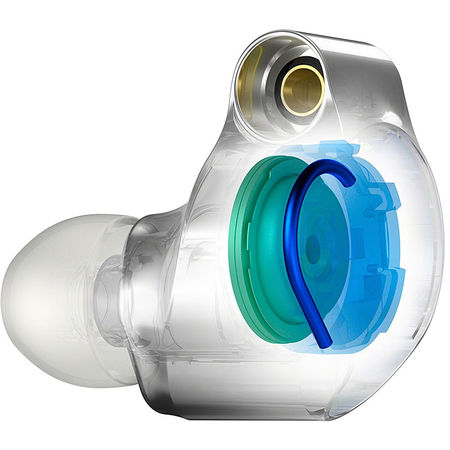 Avec le super tweeter placé en position coaxiale contre l'embout auriculaire et le transducteur de 12 mm de diamètre placé derrière lui, l'alignement des ondes sonores est optimisé grâce à l'ajustement précis de la largeur et de la longueur de chaque chemin acoustique.