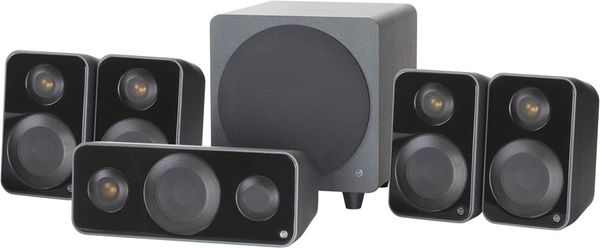 Pack d'enceintes compact 5.1 Monitor Audio comprenant 4 enceintes compactes Vector V10, 1 enceinte centrale V20 et 1 caisson de basses VW8