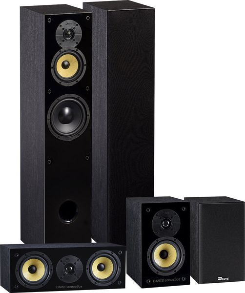L'enceinte colonne Davis Balthus 50 est ainsi équipée d'un haut-parleur de médium de 13 cm, en charge de la reproduction de la plage de fréquences de 400 Hz à 4000 Hz. En deçà, c'est un haut-parleur à membrane en cellulose de 17 cm qui reproduit les basses fréquences. Il est associé à une charge bass-reflex à évent circulaire frontal, qui assure une reproduction du registre grave jusqu'à 45 Hz. Une fréquence suffisante en hi-fi comme en home-cinéma pour éprouver physiquement la musique à volume soutenu. Les hautes fréquences sont confiées à un tweeter à dôme souple, qui assure une large dispersion sonore. L'enceinte centrale Davis Balthus 10 est ainsi équipée des mêmes haut-parleurs de grave-médium de 13 cm, tout comme l'enceinte surround Davis Balthus 30. La cohérence sonore de cet ensemble home-cinéma. est ainsi optimale.