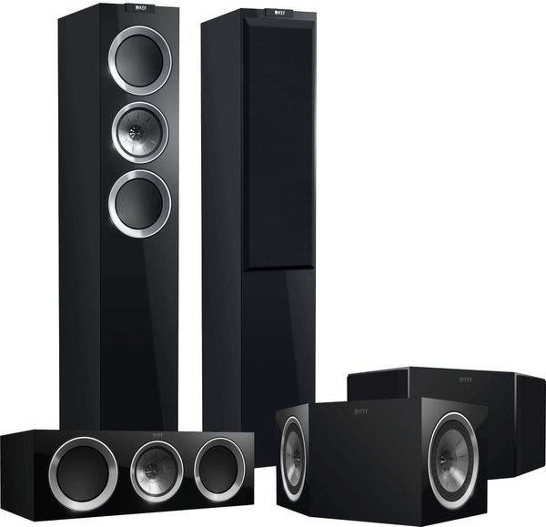 L'enceinte colonne KEF R500, l'enceinte centrale KEF R200C et l'enceinte surround KEF R800DS sont ainsi équipées de ce fameux haut-parleur coaxial. La colonne et la centrale recoivent en renfort pour la restitution du grave deux haut-parleurs de 13 cm de diamètre avec bobine de 50 mm, chacun chargé dans son propre volume d'air accordé.