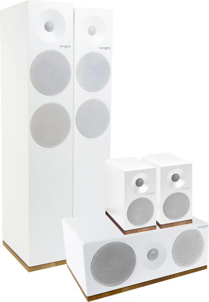 Le pack d'enceintes home-cinéma 5.0 Tangent Spectrum X6 HC comprend une paire d'enceintes colonne Tangent Spectrum X6, une enceinte centrale Tangent Spectrum XC et une paire d'enceintes compactes Tangent Spectrum X4, proposées en finition satinée blanc ou noir.