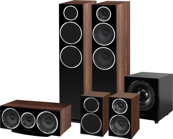 Le pack d'enceintes home-cinéma Wharfedale Diamond 230 HC 5.1 comprend 2 enceintes colonne Wharfedale Diamond 230, 2 enceintes compactes Wharfedale Diamond 210 utilisées comme enceintes surround, l'enceinte centrale Wharfedale Diamond 220C et le caisson de basses Wharfedale D8.
