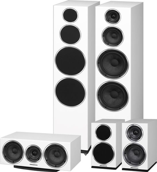 Le pack d'enceintes home-cinéma Wharfedale Diamond 250 HC 5.0 comprend 2 enceintes colonne Wharfedale Diamond 250, 2 enceintes compactes Wharfedale Diamond 220 utilisées comme enceintes surround et l'enceinte centrale Wharfedale Diamond 220C.