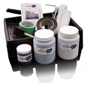 Le produit s'applique d'une façon légèrement différente si on le compare à l'application d'une peinture latex standard. Pour un meilleur rendu, le revêtement de la surface de l'écran doit être aussi bon que possible. Ceci veut dire qu'il faudra faire particulièrement attention à votre façon d'appliquer Screen Goo ainsi qu'au maniement du rouleau. Pour créer votre écran, mettez la quantité suffisante de couche de base dans le plat à peinture et mouillez votre rouleau assez légèrement, le but étant de pouvoir finir 2 colonnes de la taille de la largeur du rouleau et un peu plus. Ceci s'applique pour des dimensions d'écrans allant jusqu'à 150 cm de hauteur.