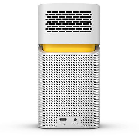 Le vidéoprojecteur Benq GV1 est ce qu'on appelle un picoprojecteur, c'est-à-dire un vidéoprojecteur portable ultra compact. Équipé d'une batterie offrant jusqu'à 3 heures d'autonomie, il peut diffuser les vidéos sans fil depuis un ordinateur ou un smartphone grâce à sa connectivité WiFi. Son port USB-C peut aussi être utilisé pour y relier un ordinateur ou une clé USB et diffuser les vidéos qu'ils contiennent. Adapté aussi bien aux soirées entre amis, aux espace de jeux ou au bureau, le projecteur BenQ GV1 embarque également un récepteur Bluetooth pour être utilisé comme enceinte sans fil Bluetooth une fois appairé avec un smartphone ou un ordinateur portable. Pesant à peine plus de 700 grammes pour seulement 15,5 cm de hauteur, il se glisse facilement dans un sac ou une valise pour vous suivre en vacances ou chez des amis pour une soirée film ou jeux vidéo.