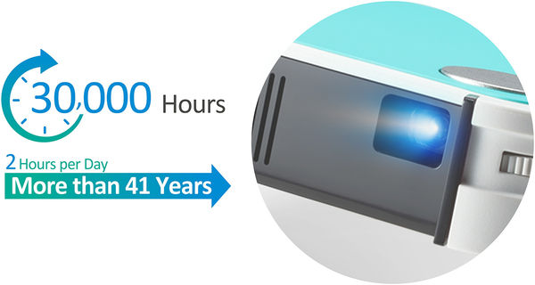 Grâce à sa source lumineuse à LED, le ViewSonic M1 mini bénéficie d'une fonction d'allumage immédiat. Il est prêt à diffuser vos films et séries sans attendre, quelques secondes seulement après l'avoir mis sous tension. Sa lampe LED dispose par ailleurs d'une durée de vie de 30 000 heures, ce qui correspond à 4 heures de projection quotidienne pendant un peut plus de vingt ans !