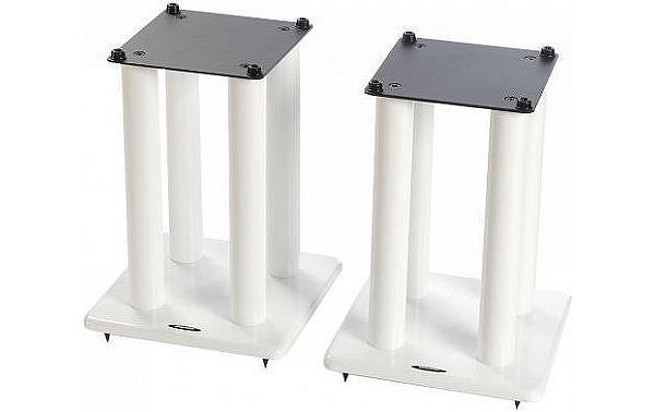 Robuste et stable, la base est surmontée de quatre tubes qui soutiennent la partie haute destinée à accueillir l'enceinte. Pour un découplage idéal des enceintes, le socle est monté sur des pointes réglables en hauteur. Quant aux quatres tubes, ils peuvent être lestés afin d'accroître l'inertie de l'ensemble.