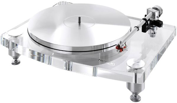 La platine vinyle audiophile Thorens TD2015 est composée d'un épais châssis en acrylique et d'un lourd plateau et d'un bras en aluminium. Trois feuilles d'acryliques composent le châssis afin de diminuer le plus possible les vibrations de la platine. Thorens a utilisé un système de mesure au laser des vibrations des différents éléments de la TD2015 afin d'éliminer toute vibration parasite. Le moteur à démarrage progressif fonctionne selon la même philosophie. C'est bien simple, tout a été étudié dans cette platine pour concourir à offrir le signal analogique le plus propre possible. L'alimentation est d'ailleurs externalisée, afin de ne transmettre aucune vibration parasite à la mécanique de lecture. La Thorens TD2015 est livrée sans cellule et mérite un modèle haut de gamme.