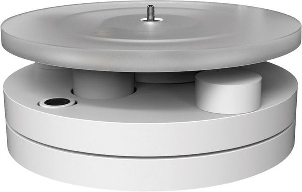 L'entraînement du plateau de la platine vinyle Wilson Benesch Circle 25 est assuré par un moteur synchrone au moyen d'une courroie de section circulaire via une poulie à deux gorges. Le changement de vitesse de lecture s'opère manuellement en changeant la courroie de gorge.