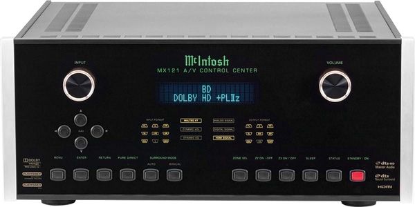 Le préampli home-cinéma McIntosh MX121 est un modèle 7.1 équipé d'une connectique HDMI 1.4, compatible AirPlay, DLNA ainsi qu'iPhone. Il dispose en outre d'un système d'autocalibration Audyssey MultEQ et d'un égaliseur à neuf bandes.