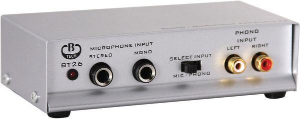 Le préampli RIAA B-Tech BT26 est compatible avec les cellules à aimant mobile ainsi que les microphones mono et stéréo. Il est ainsi équipé de trois entrées, RCA stéréo pour une platine vinyle, jack 6,3 mm mono et jack 6,3 mm stéréo. Le préampli RIAA B-Tech BT26 peut être connecté à tout amplificateur Hi-Fi intégré ou même home-cinéma. Sa conception de qualité garantit un faible niveau de bruit et un gain de préamplification élevé.