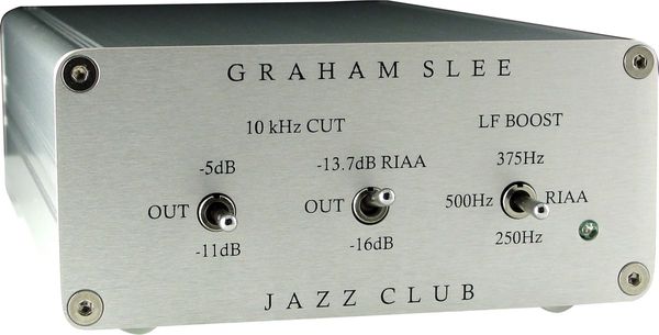 Le préampli phono Graham Slee Jazz Club est optimisé pour la lecture des disques 78 tours. Outre une très bonne musicalité, sa principale caractéristique repose sur la multitude d'égalisations proposées à l'utilisation. Si on trouve la classique égalisation RIAA, le Graham Slee Jazz Club offre également des corrections de courbe de réponse pour les très vieux enregistrements, pour lesquels la correction RIAA n'est pas adaptée. Les vieux enregistrements du début du siècle dernier sont ainsi restitués avec leur balance originale. Au dos de l'appareil, un interrupteur permet de basculer du mode stéréo en mode mono.