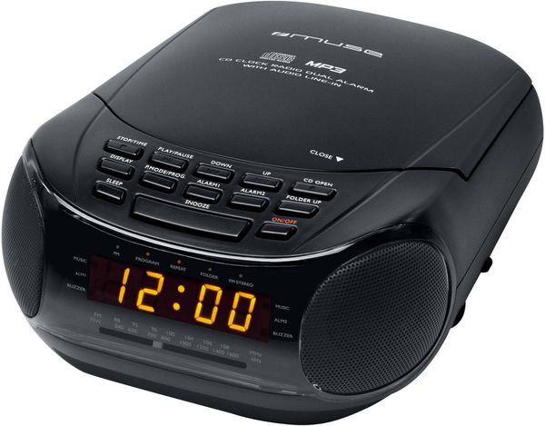 Dotée d'un tuner analogique AM-FM et d'un grand afficheur LED couleur ambre avec affichage 24H, cette radio Muse M-125 CRB se propose de vous réveiller en douceur au son de la radio ou du CD, ou bien de manière plus tonique au son du buzzer. Deux alarmes distinctes peuvent être programmées, avec bien sûr une fonction Snooze (répétition de l'alarme), bien pratique pour ceux qui ne sont pas du matin ! La fonction sommeil, quant à elle, vous donne l'occasion de vous endormir en musique en programmant la durée d'écoute avant extinction automatique.