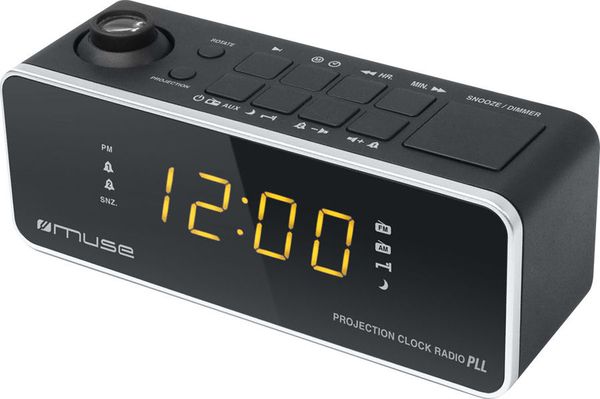 Le radio-réveil Muse M-188 P dispose d'un grand afficheur LED de couleur ambre et d'un système de projection de l'heure au plafond.