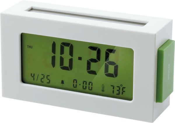 L'horloge réveil Lexon Maizy LR124 au design minimaliste dispose d'une structure en plastique à base de maïs. Objet écologique, cette petite horloge embarque un large écran LCD vert, lequel affiche date, heure et température ambiante. L'alarme programmable peut être interrompu par une simple pression sur un bouton latéral. Simple à utiliser, l'horloge réveil Lexon Maizy LR124 est livrée avec sa pile.