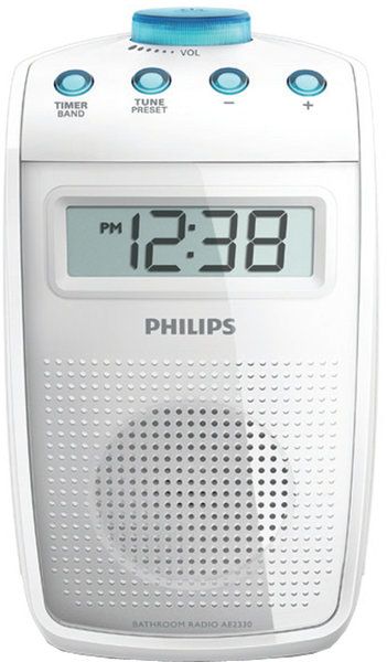 Avec son look moderne et sa petite taille, cette radio FM/MW portable Philips AE2330 vous suivra dans tous vos déplacements. En effet, grâce à sa conception anti-éclaboussures, vous pourrez même savourer votre émission de radio favorite sous la douche ! Très ergonomique, la radio portable Philips AE2330 s'avère être d'une simplicité déconcertante. Une mollette permet de régler le volume, et les autres boutons présents assurent les fonctions essentielles généralement constatées sur les radios de ce type (sélection de la radio, timer...). Dotée d'un écran LCD très lisible affichant l'heure, la Philips AE2330 peut par ailleurs garder en mémoire jusqu'à 20 stations.