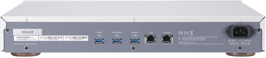 Le serveur audio Melco N1A intègre un serveur DLNA Twonky Media Server, compatible avec l'ensemble des lecteurs audio réseau et les baladeurs audio sous Android disposant d'une connexion WiFi. Le serveur Melco N1A dispose de plusieurs ports USB pour connecter un ou plusieurs disques durs externes. Un port USB 2.0 en façade est dédié à l'importation des fichiers vers les disques internes du serveur, tandis qu'un port USB 3.0 à l'arrière autorise l'extension de la capacité de stockage avec des disques ou clés USB (port Expansion). Les autres ports USB 3.0 à l'arrière servent respectivement à connecter un DAC externe USB (lecture des fichiers PCM jusqu'à 32 bits / 384 kHz et DSD jusqu'à 11,2 MHz) et à sauvegarder le contenu du serveur sur un disque externe (Backup).